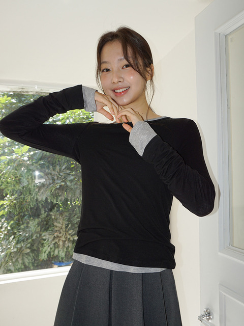[무드인사이드 우먼] (woman) 레이어드 롱 슬리브티_Black
