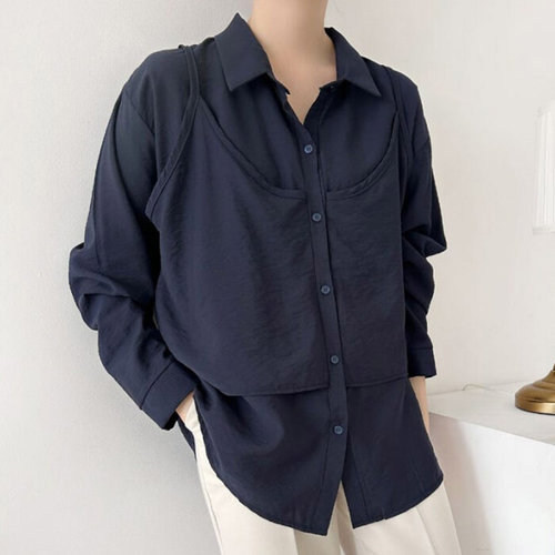 [셀러허브_여성트랜드패션]빅사이즈 511 끈나시레이어드남방 DBSV591