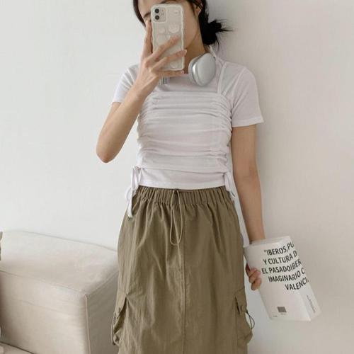 엘케이트 여성 슬리브리스 반팔티 셋업 여름 린넨 레이어드 스판 티 LDIO004