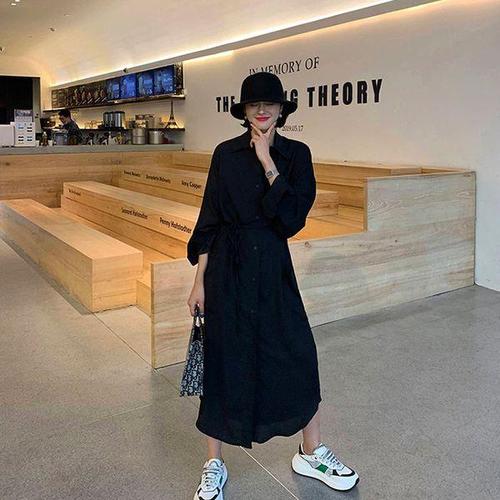 couchsurfing 여성 레이어드 스타일 셔츠형 긴소매 롱 원피스
