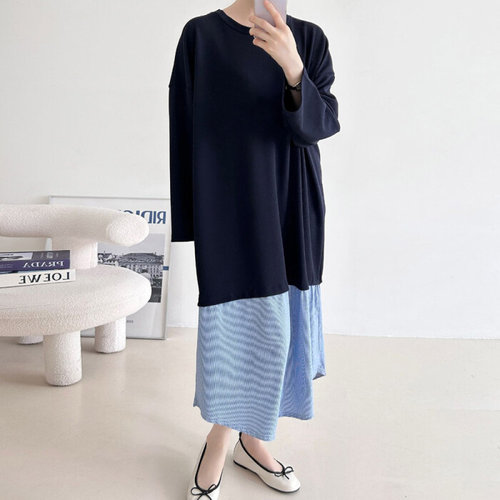 봄 가을 셔츠 배색 레이어드 빅사이즈 핀턱 맥시 롱 원피스 하객 모임 오피스룩 미시 엄마옷