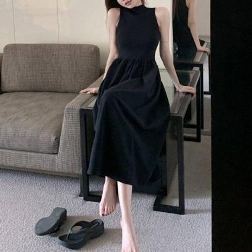 플레어 레이어드 민소매 라운드넥 롱원피스