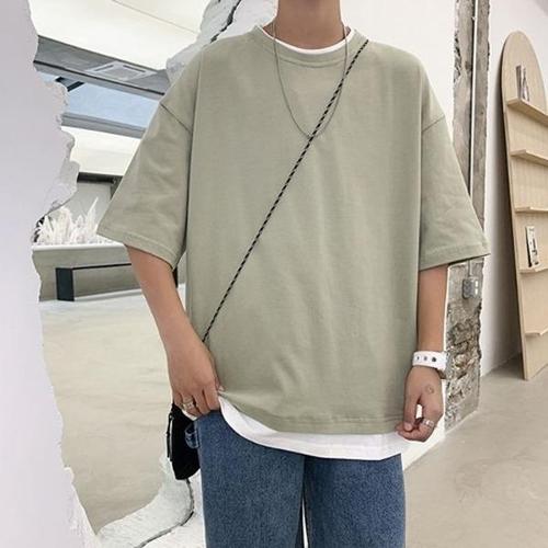 [엄지척]남자 오버핏 반팔 레이어드 무지 반팔 티셔츠 라운드_20481300_667501