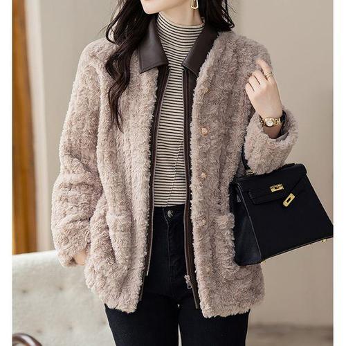 [스타일온미][스타일온미] 아델르 톡톡 골지 니트 레이어드 카라 퍼 자켓