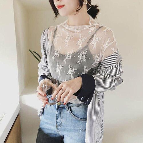 망사 티셔츠 레이어드 그물티 목폴라 물결 이너 반목 WFL0B5M
