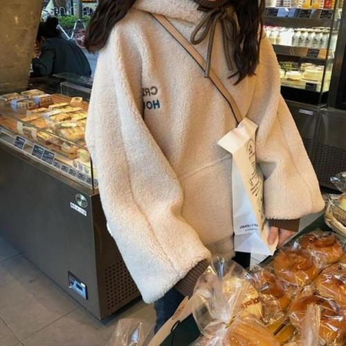 여성 루즈핏 페이크 레이어드 플리스 후드 티셔츠