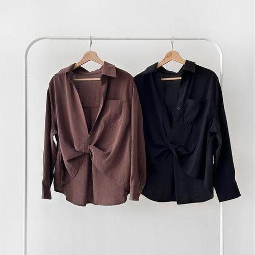 [신상오픈런]여성 레이온 트위스트 셔츠 광택 매트 블라우스