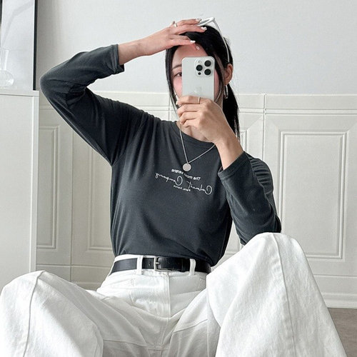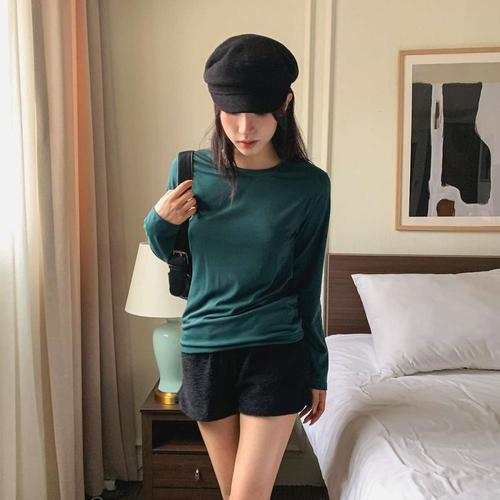 일월전빵 봄 가을 사계절 간절기 여성용 슬림핏 무지 이너 긴팔티셔츠 B-C025S