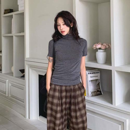 [옷자락]여성 레이온 스판 반팔 폴라넥 티