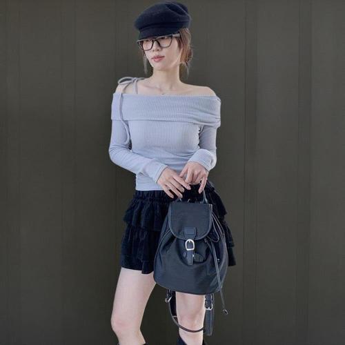 [미라클세븐]여성 레이온 스판 골지 기모 스트랩 긴팔 티셔츠