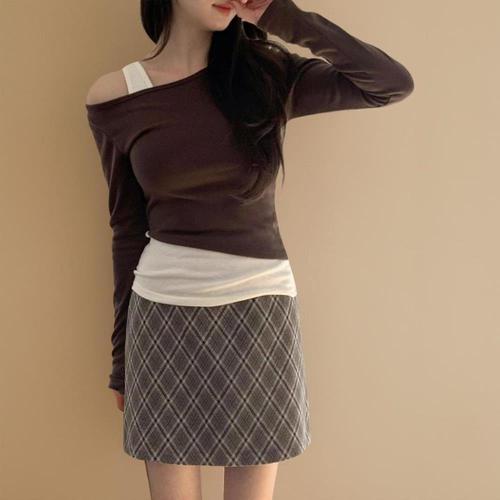 [옷자락] 여성 레이온 스판 어깨트임 언발 레이어드 긴팔티