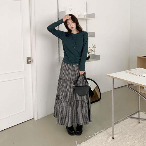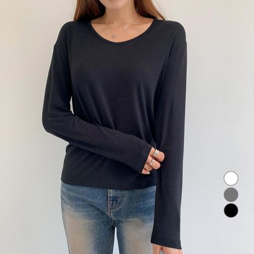 [옷자락] 여자 무지컬러 레이온 스판 라운드넥 긴팔 티셔츠