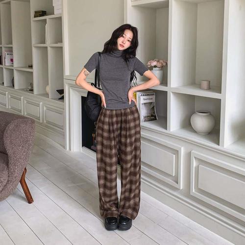 옷자락 / 여자 심플 레이온 스판 골지 기모 폴라넥 반팔 티셔츠
