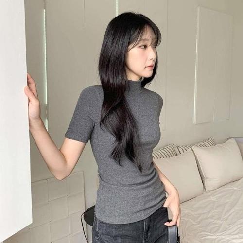 [다잇템][다잇템] 여자 편한 슬림핏 클래식 레이온 모크넥 민무늬 반팔티_23517644_588872