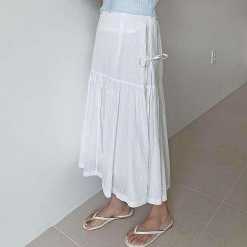 [다잇템][다잇템] 여성용 핀턱 스트랩 레이온 리본 후레아 롱스커트_22302632_588872
