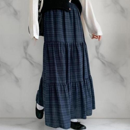 [다잇템][다잇템] 여성 롱 레이온 베이직 프릴 격자 코튼 고무줄 치마_22868700_588872