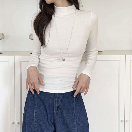 [다잇템]여성 슬림 폴라넥 롱슬리브 보온 레이온 티셔츠