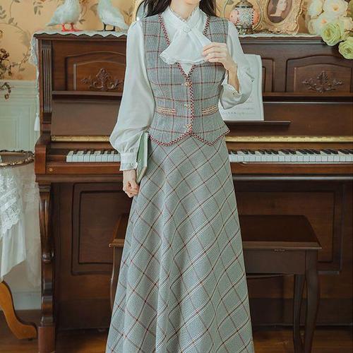 [지앤제이]그레이 빅체크 레이스카라 쓰리피스 풀세트 3종