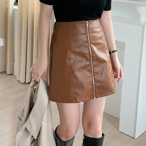 [옷자락] 여자 가죽치마 레자 하이웨이스트 앞지퍼 미니스커트