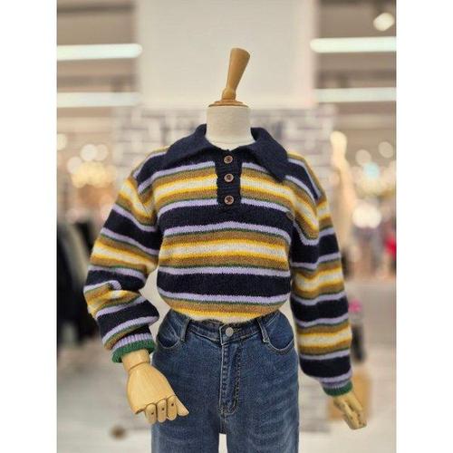 갤러리아_[레코브]헤어리 스트라이프 카라니트(LC31EZKN622X)