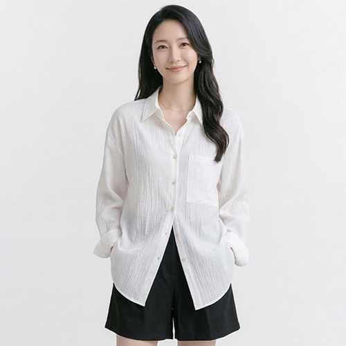 NB3070 여성 데일리 루즈핏 심플 얇은 크링클 긴팔 셔츠