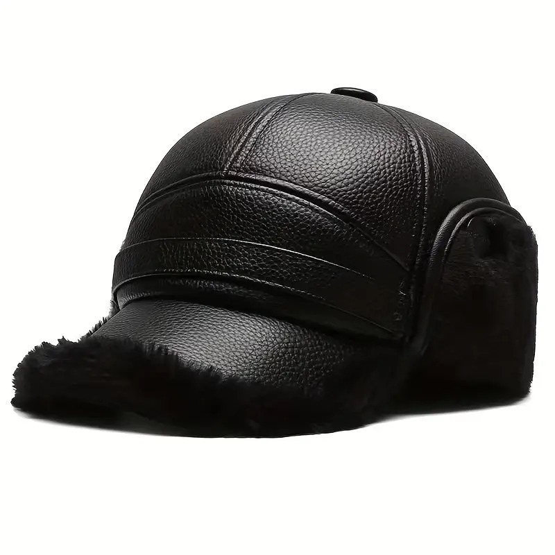 TEMU 겨울 남성용 인조 밍크 퍼 베레 캡 - 두꺼운 따뜻한 미드-에이징 & 엘더용 방풍 모자, 조절 가능한 스트랩, 우아한 블랙 겨울 비니 (스키, 하이킹, 출퇴근용) - 아빠, 남편, 할아버지를 위한 이상적인 선물, 클래식 디자인, 내구성 강화, 고품질 안감, 남편 선물|등산모자
