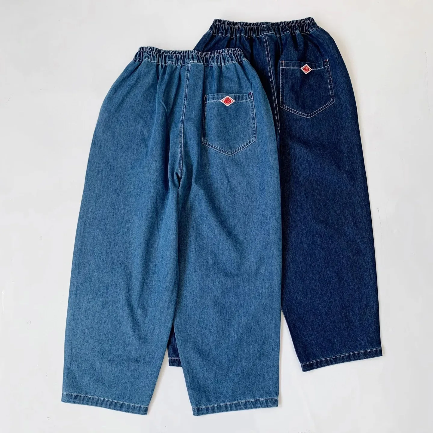 여름 새로운 스타일 일본식 느슨한 탄성 허리 캐주얼 청바지 백 포켓 순수한 색상 여성용 다목적 클래식 롱 바지