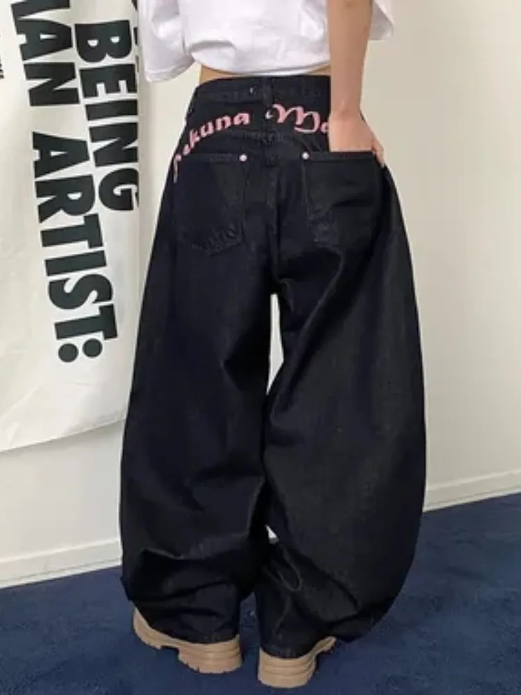 2025 가을 여성용 블루 Y2K 배기진 하라주쿠 일본 2000년대 스타일 데님 바지 미국 빈티지 청바지 트래시 의류