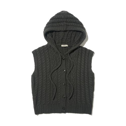 [로아드로아]플러피 윈터 니트 후드베스트 (차콜)