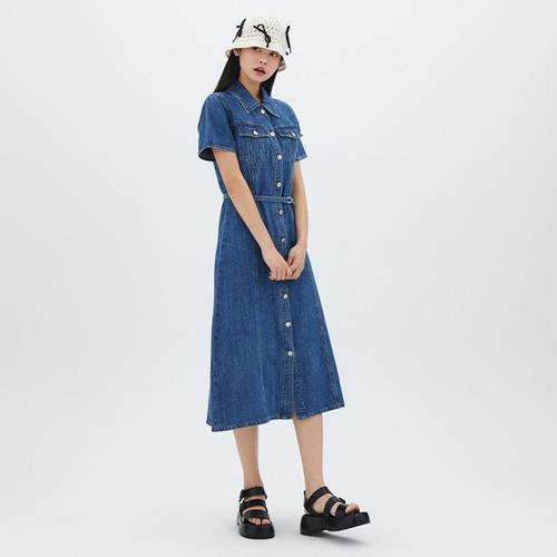 [랩][LAP 랩] 셔츠형 벨트 롱 데님원피스 AR2DO461_DG