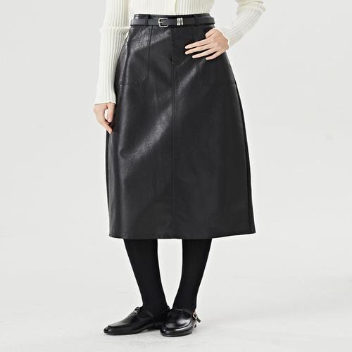 [보니스팍스]벨티드 레더 포켓 H라인 백 트임 롱 스커트 (XO4WH004L0)