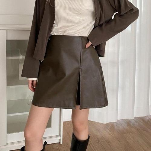 [옷자락]여성 클래식 슬림핏 가죽 트임 H라인 미니 치마