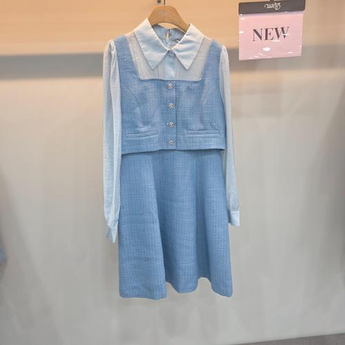 [로엠]배색카라 트위드 원피스 (RMOWE23R11)_SH