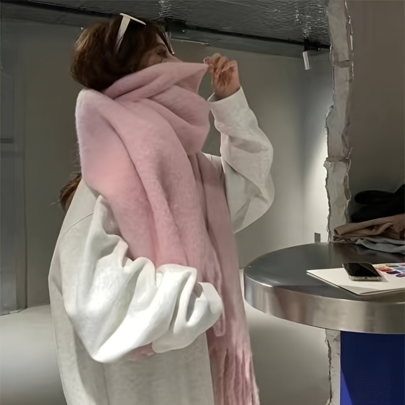 TEMU 1개 여성용 플러시 인조 스카프 숄 - 오버사이즈 롱 윈터 칼라, 소프트 핑크(다크 쉐이드까지) 방풍 보온 코트 액세서리, 세탁기 사용 가능한 우아한 랩, 추운 날씨, 파티 및 일상 사용 - 신축성 없는 내구성 디자인