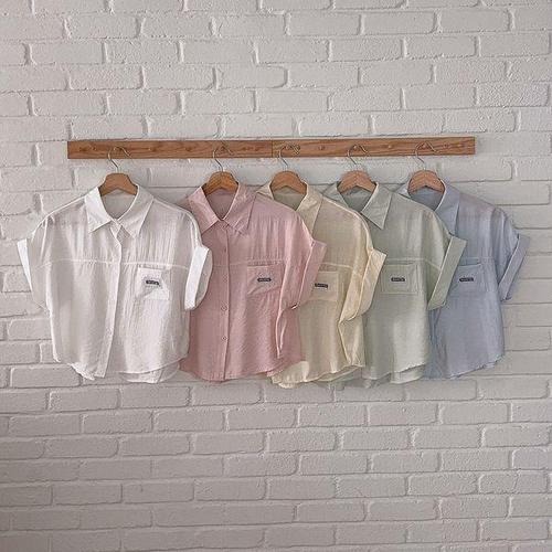 [옷자락]여자 파스텔컬러 포켓 소매롤업 반팔 셔츠 남방