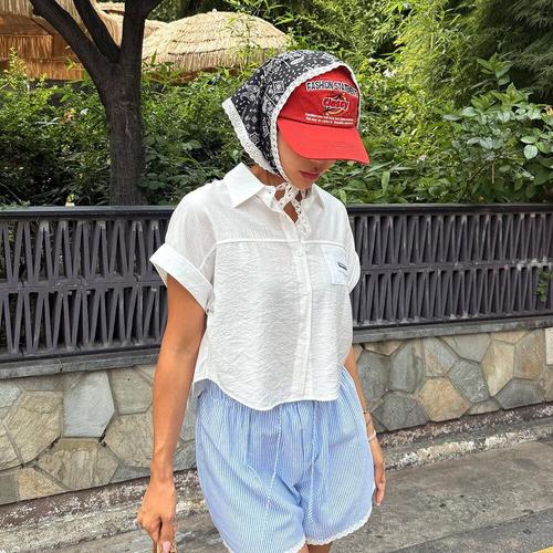 YAMANMAN 데일리룩 여성 블라우스 반팔 셔츠