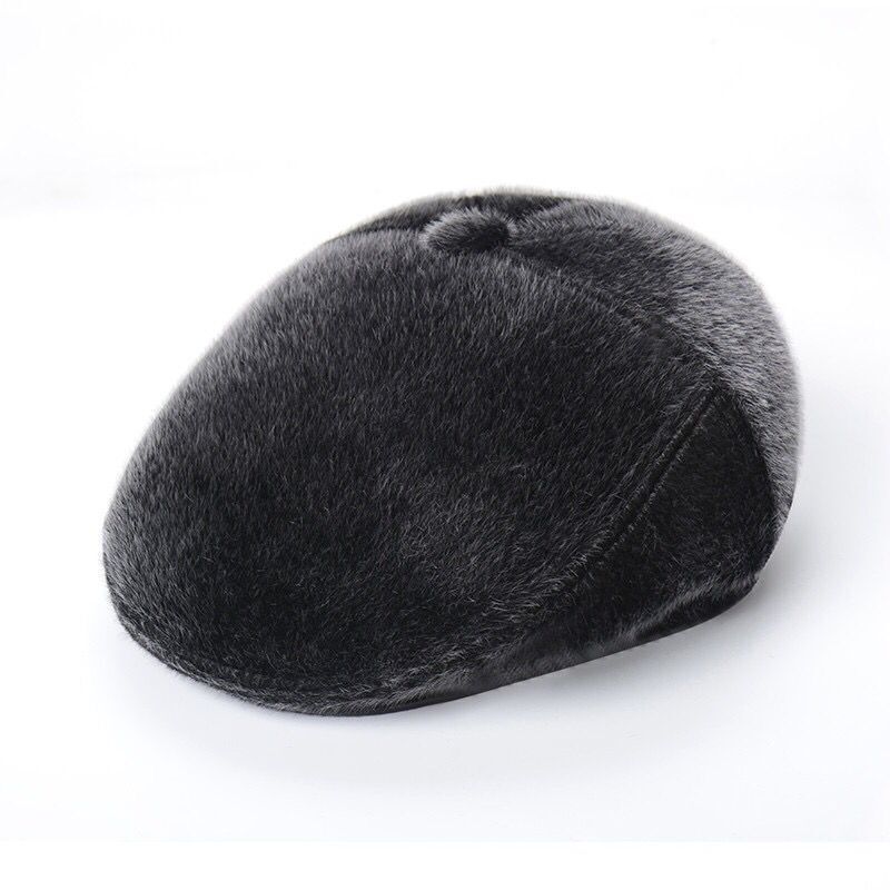 TEMU 겨울 남성용 인조 밍크 퍼 베레 캡 - 두꺼운 따뜻한 미드-에이징 & 엘더용 방풍 모자, 조절 가능한 스트랩, 우아한 블랙 겨울 비니 (스키, 하이킹, 출퇴근용) - 아빠, 남편, 할아버지를 위한 이상적인 선물, 클래식 디자인, 내구성 강화, 고품질 안감, 남편 선물