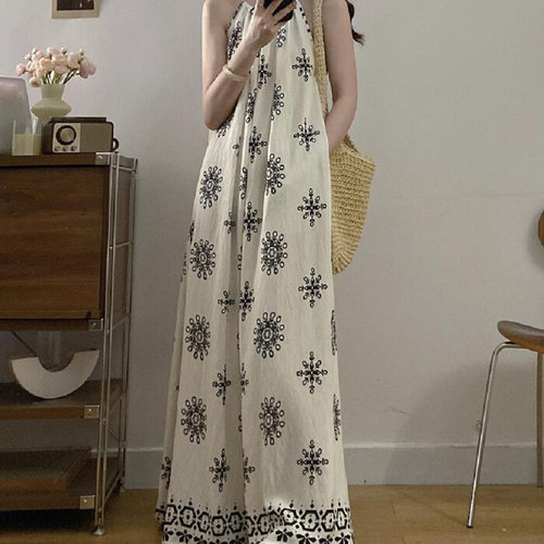 [에이치플러스몰]꼬임 홀터넥 가벼운 민소매 롱 원피스 URD517 비치 홀