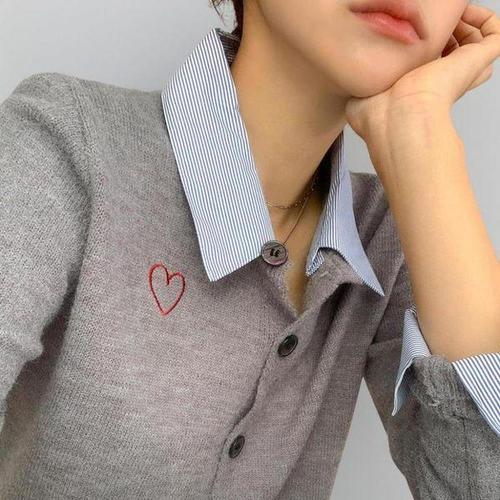 [다잇템]여성 코디 크로쉐 하트 남방 롱슬리브 가디건