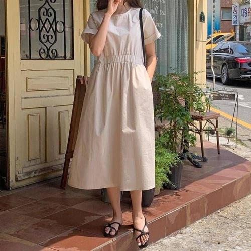 라운드넥 쉬폰 베이직 캉캉 셔츠 롱 휴양지 데 WFKPDOM