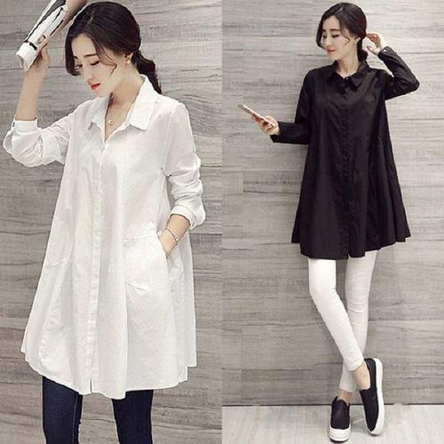 [다잇템]여자 2WAY FW 주머니 롱남방 드레스 셔츠