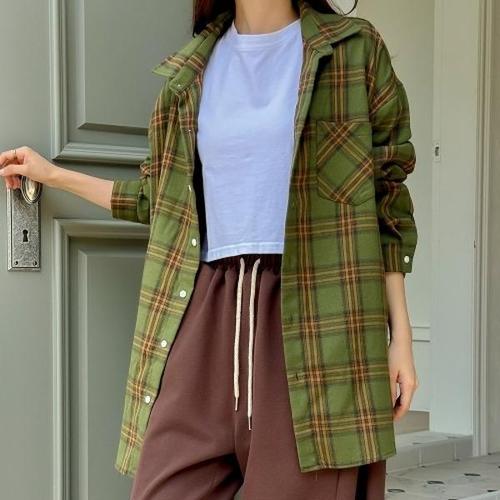 여성 셔츠 체크 롱남방 오버핏 데일리 루즈핏 남방 (WFJH426)