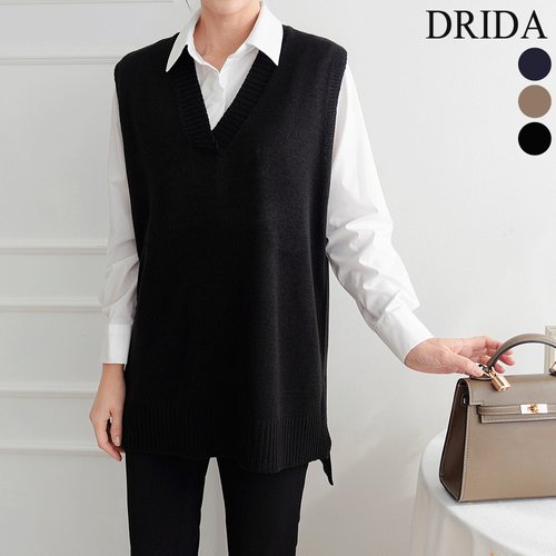 [에이치플러스몰]여자 롱 니트 조끼 옆트임