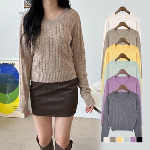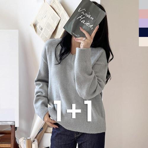 엔젤리크 여성 베이직 브이넥 긴팔 니트 니트티 1P