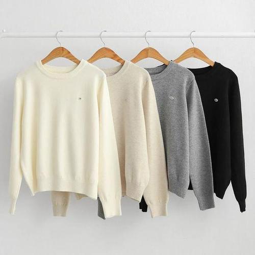 [다잇템_패션]여성 U넥 롱슬리브 버튼포인트 무채색 니트티