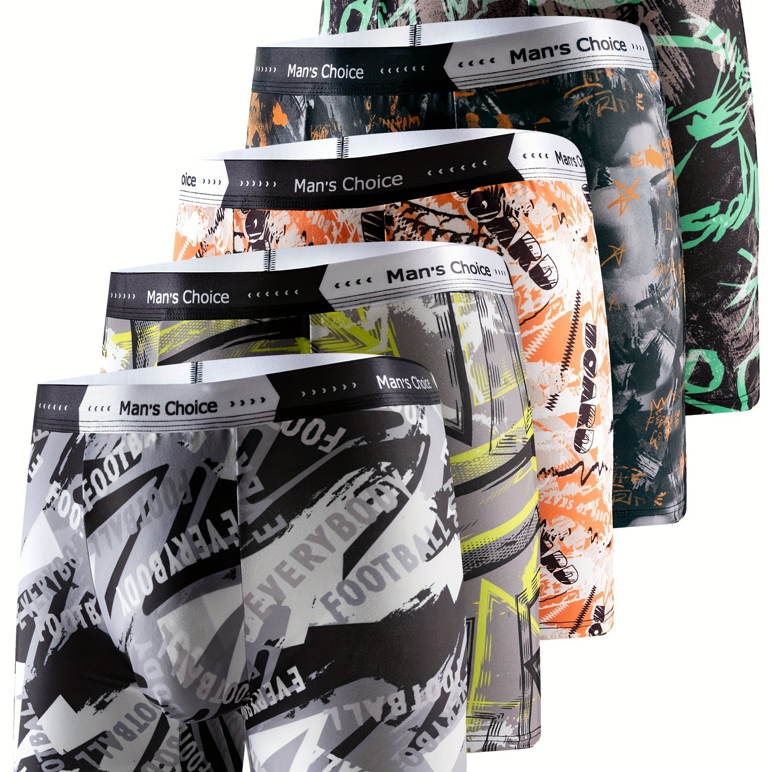 TEMU 5팩 남성용 롱 드로즈 - 통기성 좋고 편안하며 스타일리시한 기하학적 패턴, 그린, 오렌지 색상 - 캐주얼 복장에 적합, 편안한 속옷 | 스타일리시 드로즈 | 중간 탄성