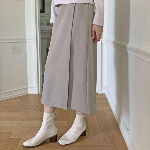 [옷자락] 여성 무지 심플 스판 뒷밴딩 일자핏 롱 랩 스커트