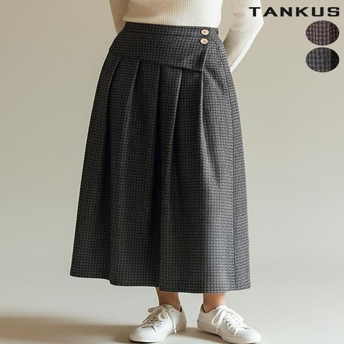 [탱커스]여성 체크 랩 주름 롱스커트