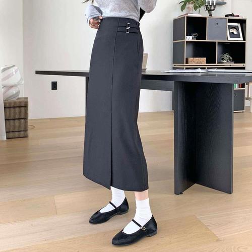 [다잇템]여성 일자 랩 편한 클래식 버클 치마 롱 디자인