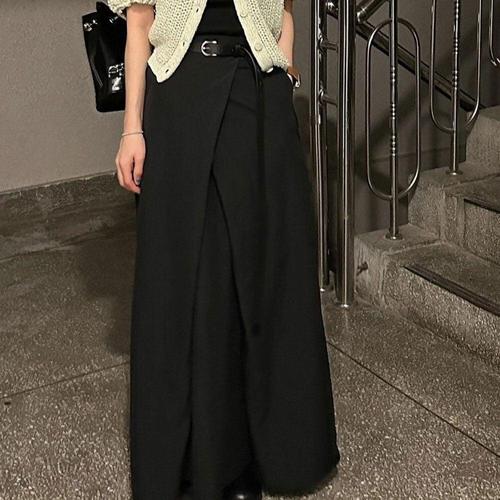 [옷자락]여성 데일리 스판 H라인 랩 롱 스커트 버클 디자인